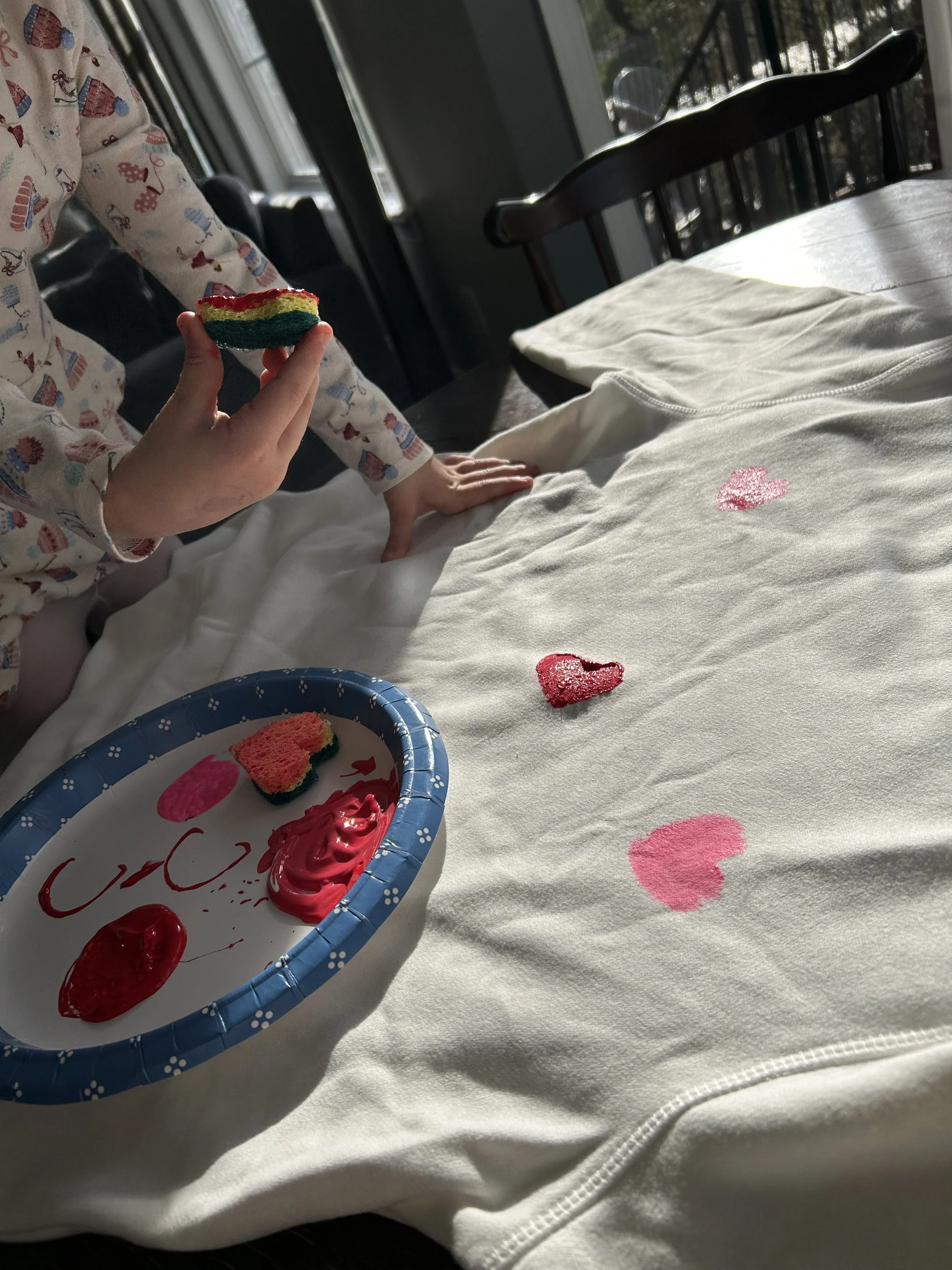 We’re a big fan of homemade gifts over here and we love an opportunity to do a craft! This is such a fun activity to gift to grandparents and turns any comfy sweater into a cherished memory. My eldest (5) and I did this together while my younger two were sleeping, and it was the perfect age-appropriate activity for her to do (mostly!) on her own. We had so much fun painting together and making this sweet gift for her grandma. I love any one-on-one time I get with my kiddos and making something together is such a special way of spending our time. This was such a fun project that’s so versatile for the holidays or any other time during the year. Handmade gifts are the best, especially when they’re made by little hands. Below you’ll find the required supplies and directions. Please know that we do receive a small compensation at no cost to you for any purchases you make with our links. This helps support our activities and providing them to you. Have so much fun crafting!